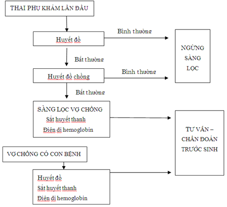 Việc sử dụng các xét nghiệm huyết học tầm soát thalassemia trước sinh thực hiện theo quy trình sau:
